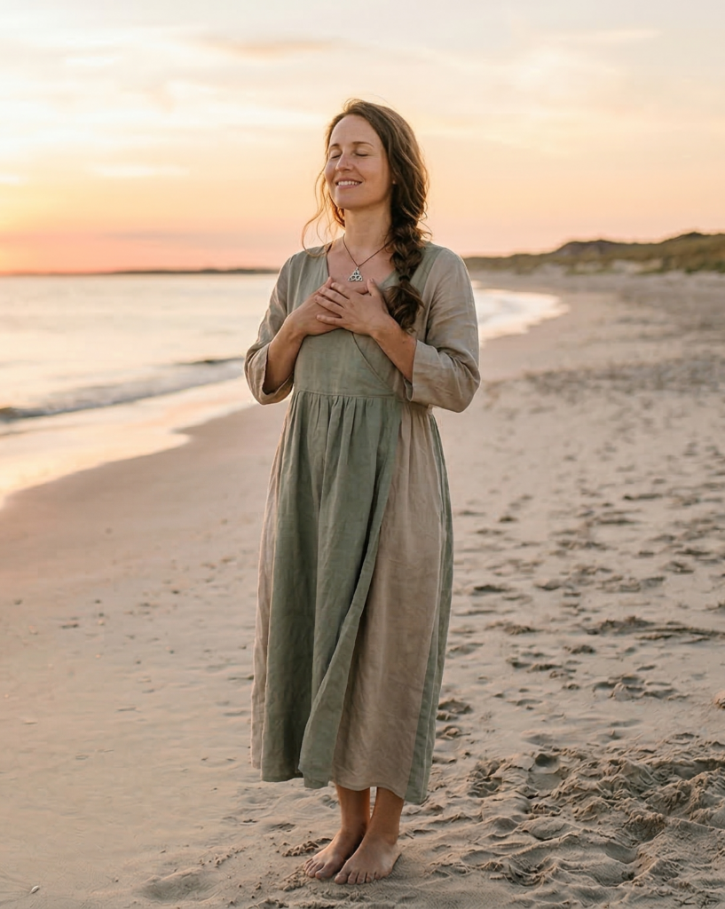 • Stap 2 Het vuur van Brigid: Stel je voor dat er een zachte, gouden vlam is, vlak boven je hart. Dit is het vuur van Brigid. Het brandt helder, warm en sterk. Het brandt voor jou.
